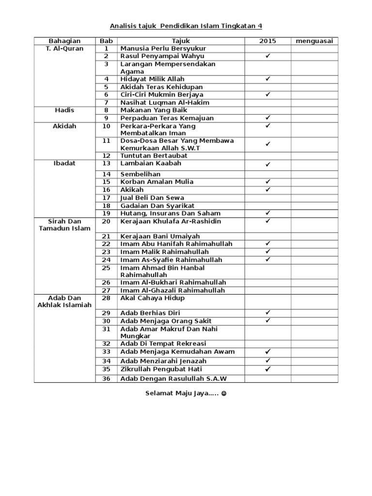 Senarai Tajuk Pendidikan Islam Ting 4 Pdf